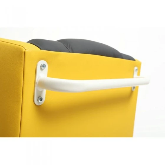 Sellerie bicolore jaune et gris anthracite en polyuréthane imperméable, désinfectable et classé au feu M1.